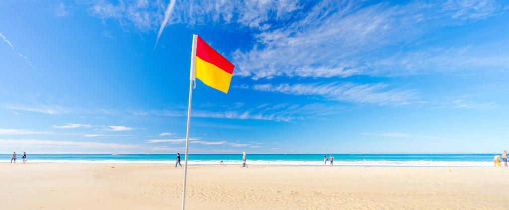When you’re at the beach, always swim between the red and yellow flags. These flags indicate areas patrolled by lifeguards, who monitor for dangerous conditions and can assist in emergencies. Swimming outside these flags increases your risk of encountering strong currents, marine life (including sharks) and other hazards without immediate help.